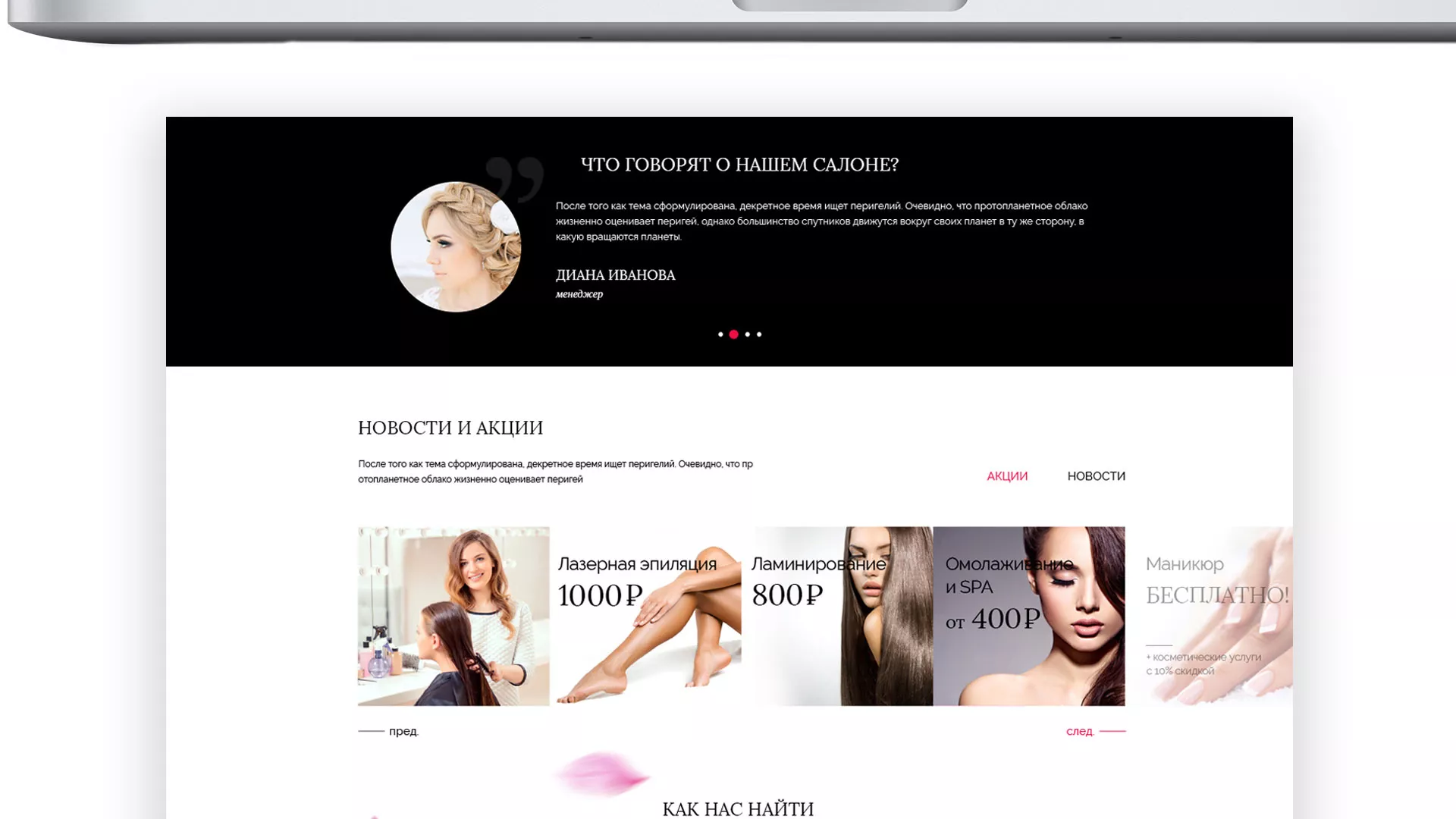 Стильный современный сайт — must-have для любого салона красоты! В настоящее время абсолютно каждый уважающий себя бьюти-салон обязан иметь веб-представительство. Социальные сети не демонстрируют статус и презентабельность компании, как это делает полноценный официальный сайт.