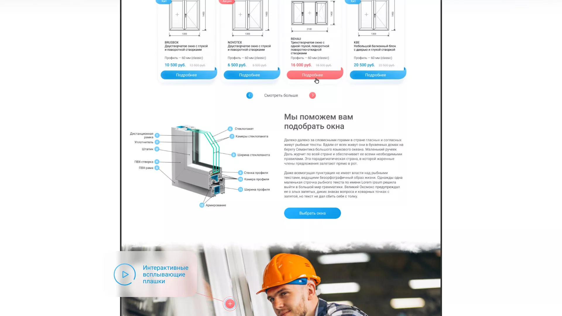 Задачей по проекту было — разработать светлый, дружелюбный дизайн сайта-каталога компании «Окна ВИДО» в Пустошке, интерфейс взаимодействия с пользователем и проработать внутренние страницы, наглядно отобразив информацию иллюстрациями.
